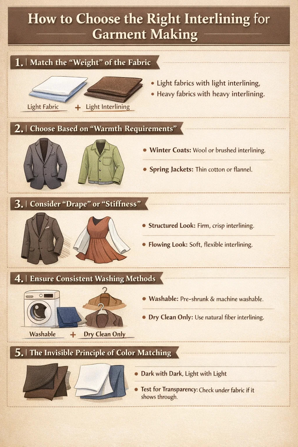 In garment making, choosing the right interlining is a crucial step in determining the texture and lifespan of the finished garment. When selecting interlining, you can refer to the following simple and practical principles: