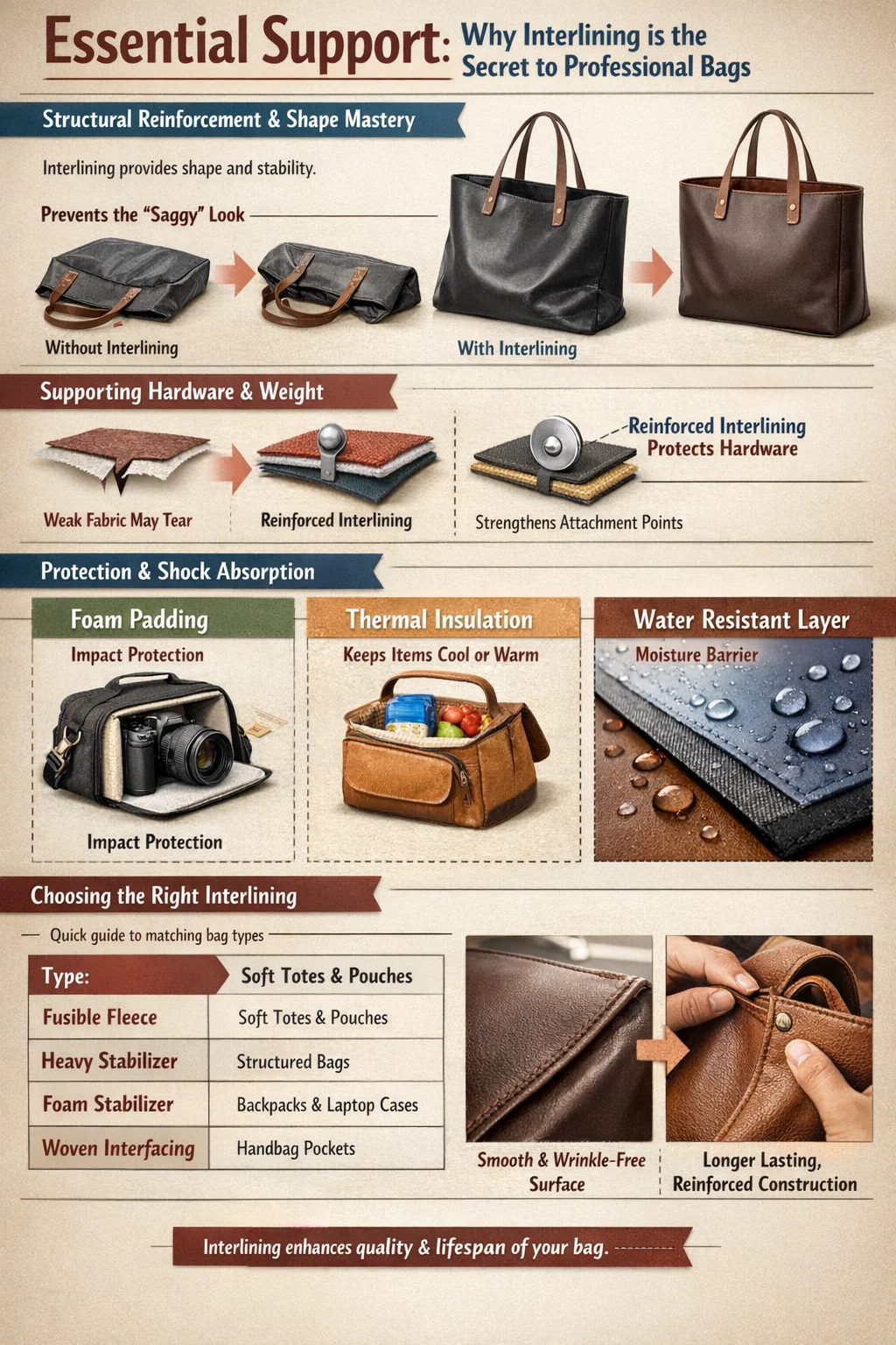The primary reason to use interlining in bag construction is to provide structural integrity and long-term shape retention that fabric alone cannot achieve. Without this hidden layer, most bags would collapse under their own weight or the weight of the items inside, appearing limp, wrinkled, and unfinished. By adding the correct interlining, you transform a simple piece of cloth into a functional 3D object that stands upright, protects its contents, and withstands the rigors of daily use.